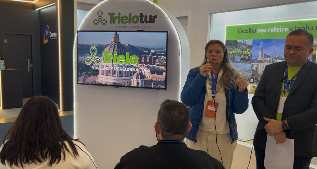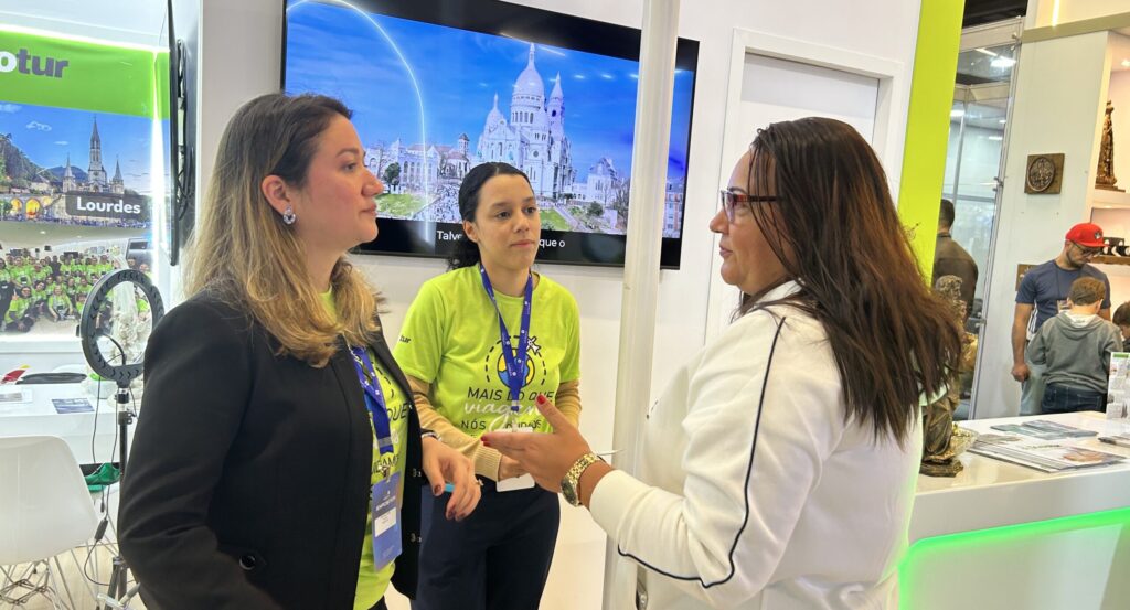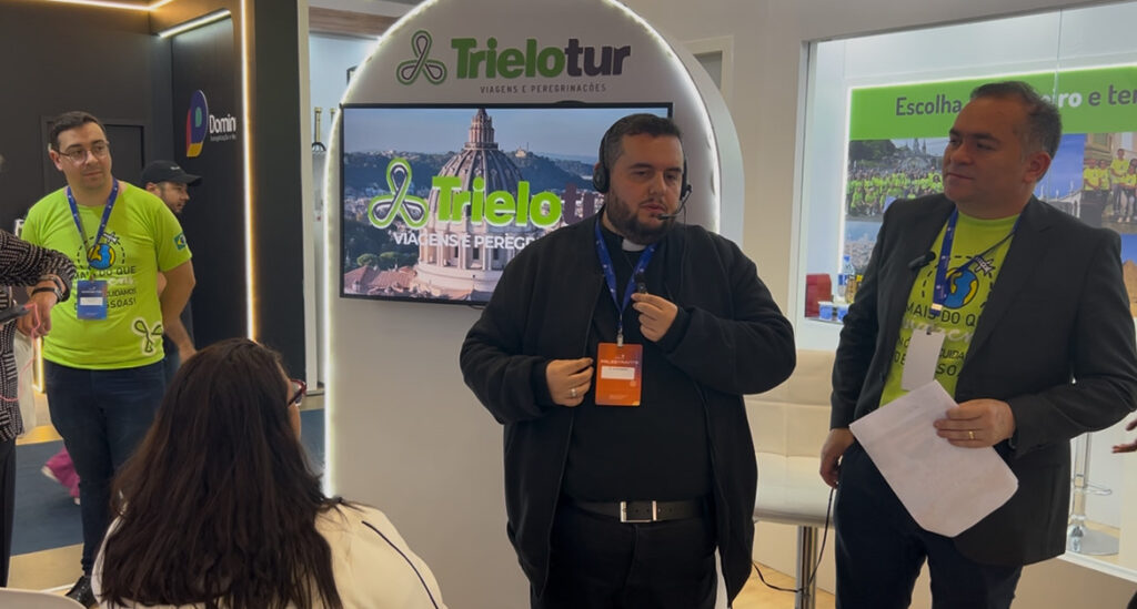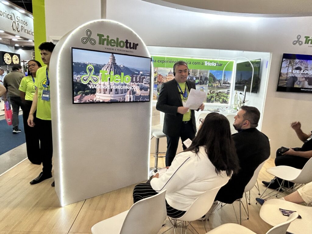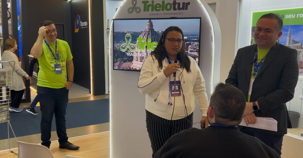 O lançamento da peregrinação ocorreu neste sábado, 5 de julho, no estande da Trielotur, durante a ExpoCatólica 2025, em São Paulo (SP) e contou com a presença de Angela Morais, Founder e CEO da Kolbe Arte, do padre Edson Ribeiro, que será o diretor espiritual da viagem, e de Fabiana Lima, fundadora da Trielotur.